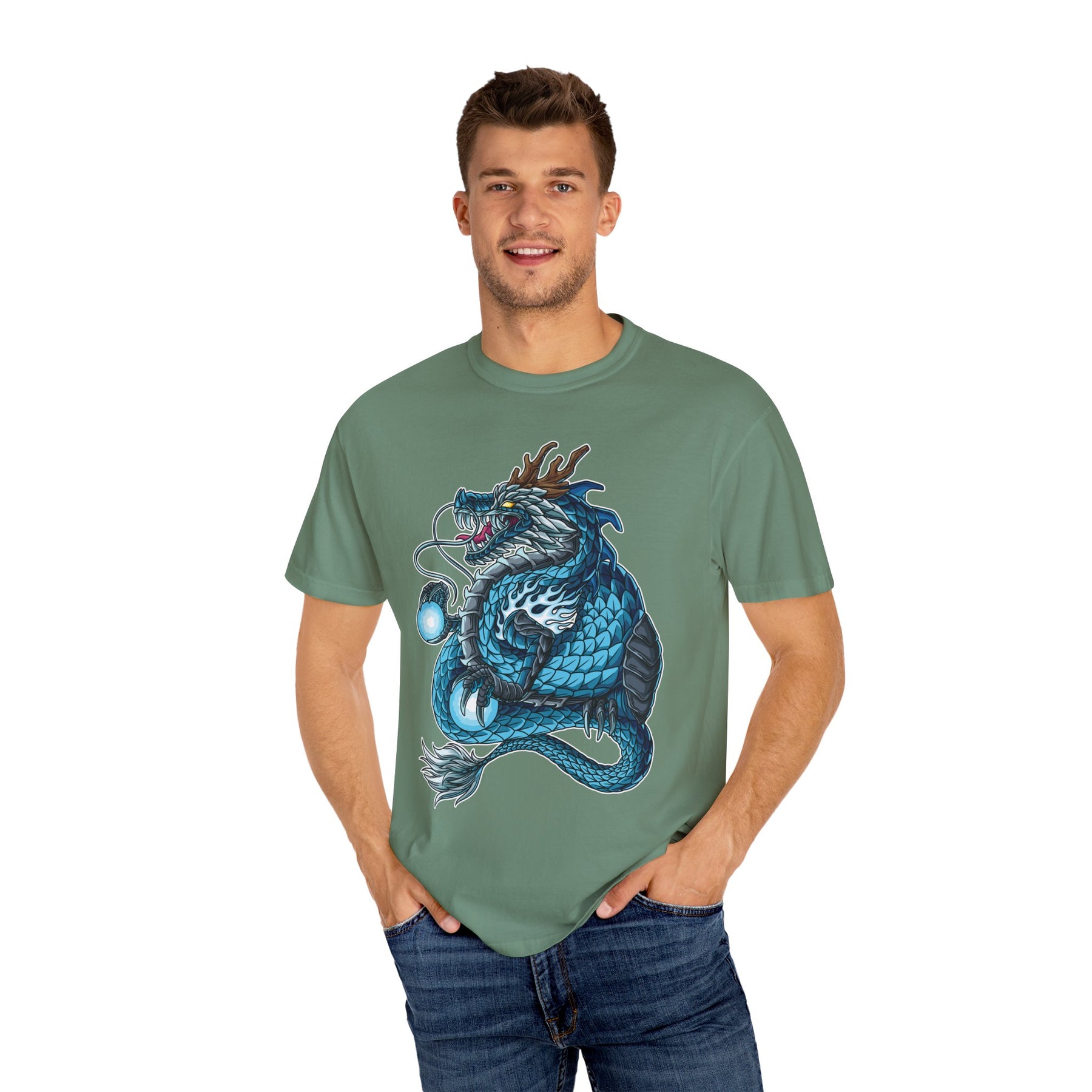 Art collectors often search for pieces that capture both beauty and meaning, and this mythical dragon tee definitely delivers that perfect balance. The Eastern dragon concept draws inspiration from thousands of years of Asian mythology, creating a blue fantasy shirt that appeals to fans of cultural art, fantasy literature, and mystical symbolism. Available in sizes S through 4XL, this garment fits every mythology enthusiast perfectly, from casual fans to serious collectors of Eastern art and dragon lore.