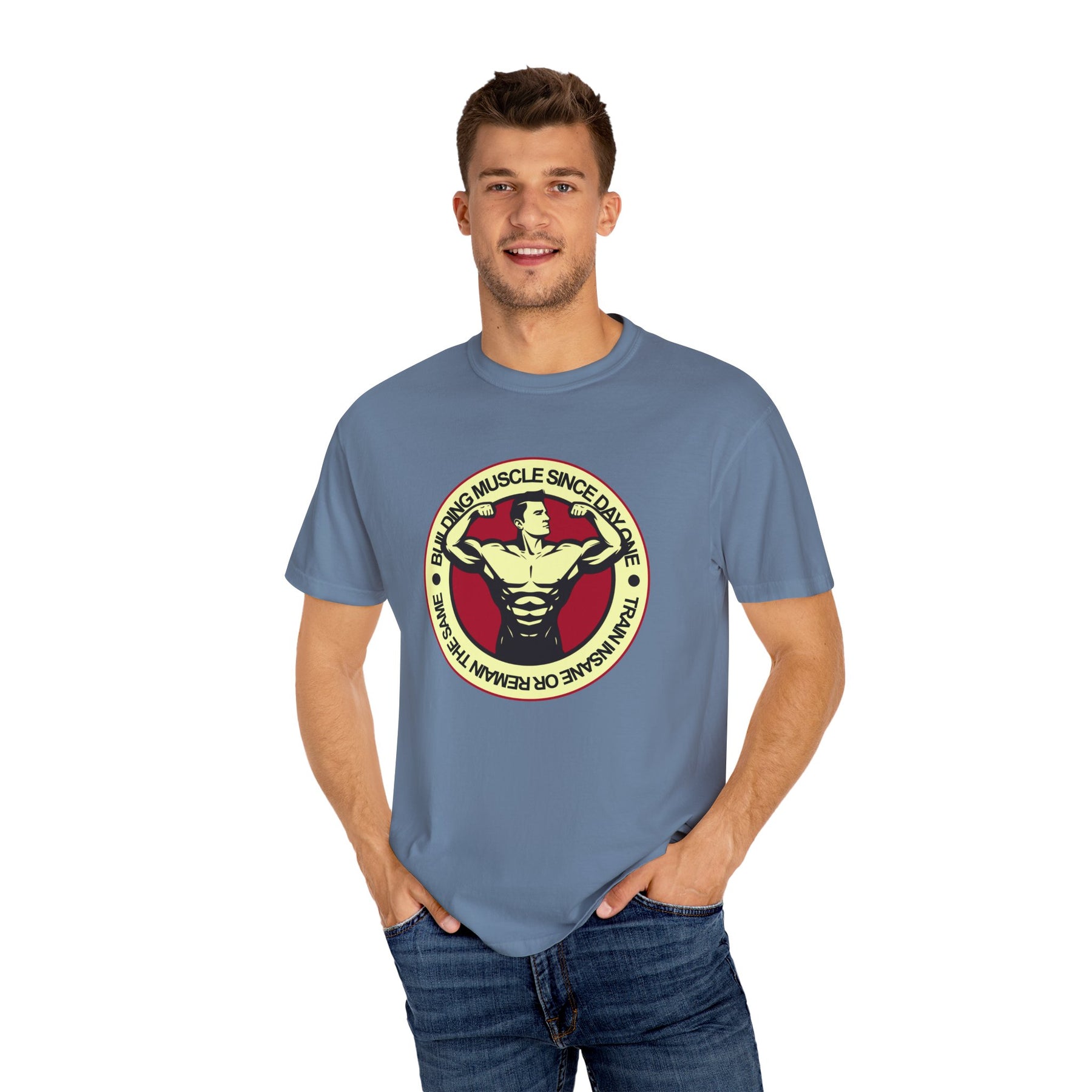 This inspirational shirt celebrates your fitness journey, acting as a constant reminder of how far you’ve come. It’s a symbol of your dedication, designed for the man who sees bodybuilding as a long-term commitment. The "Building Muscle Since Day One" message resonates with the perseverance required to sculpt a strong physique. It’s an outward display of the inner strength and discipline you live by every single day.