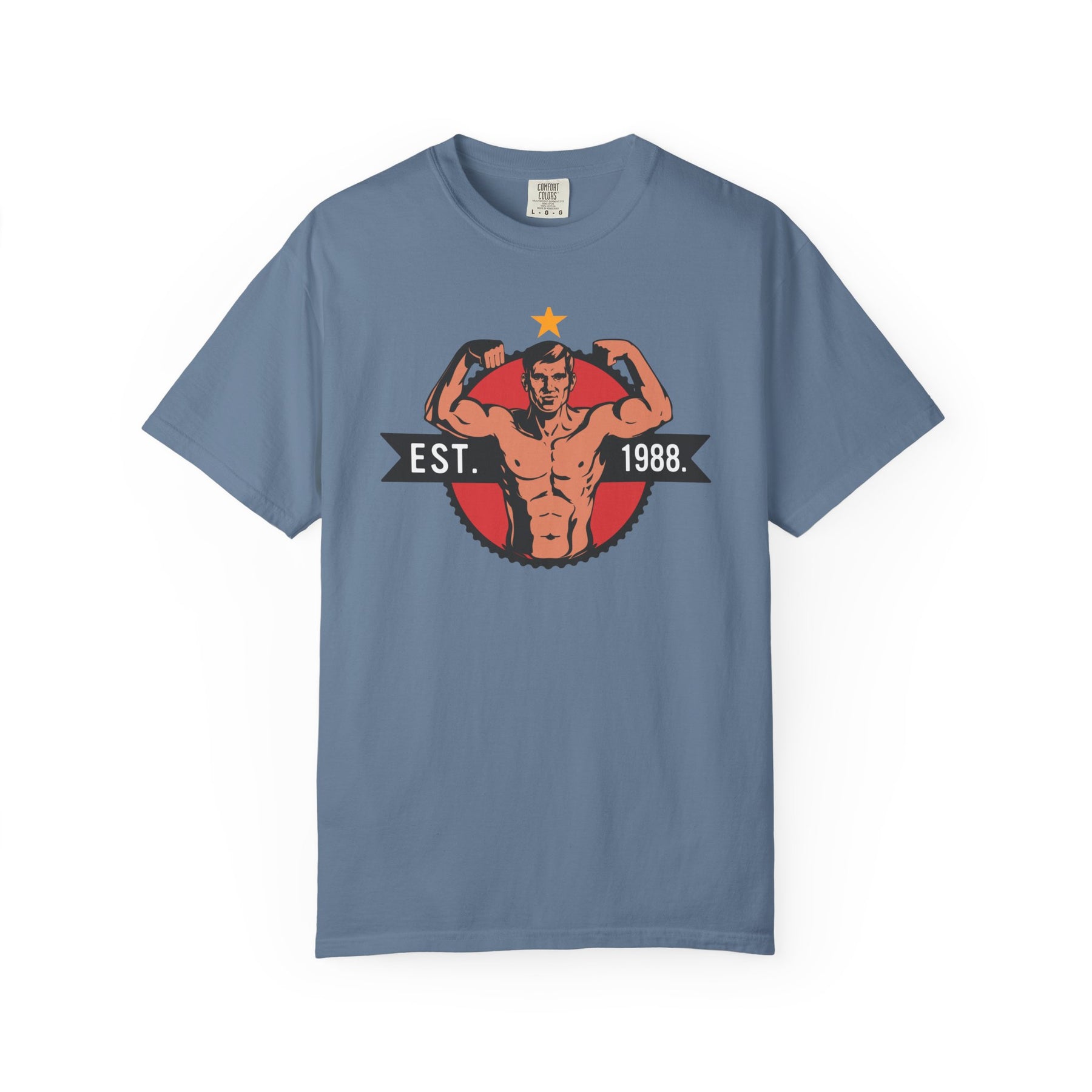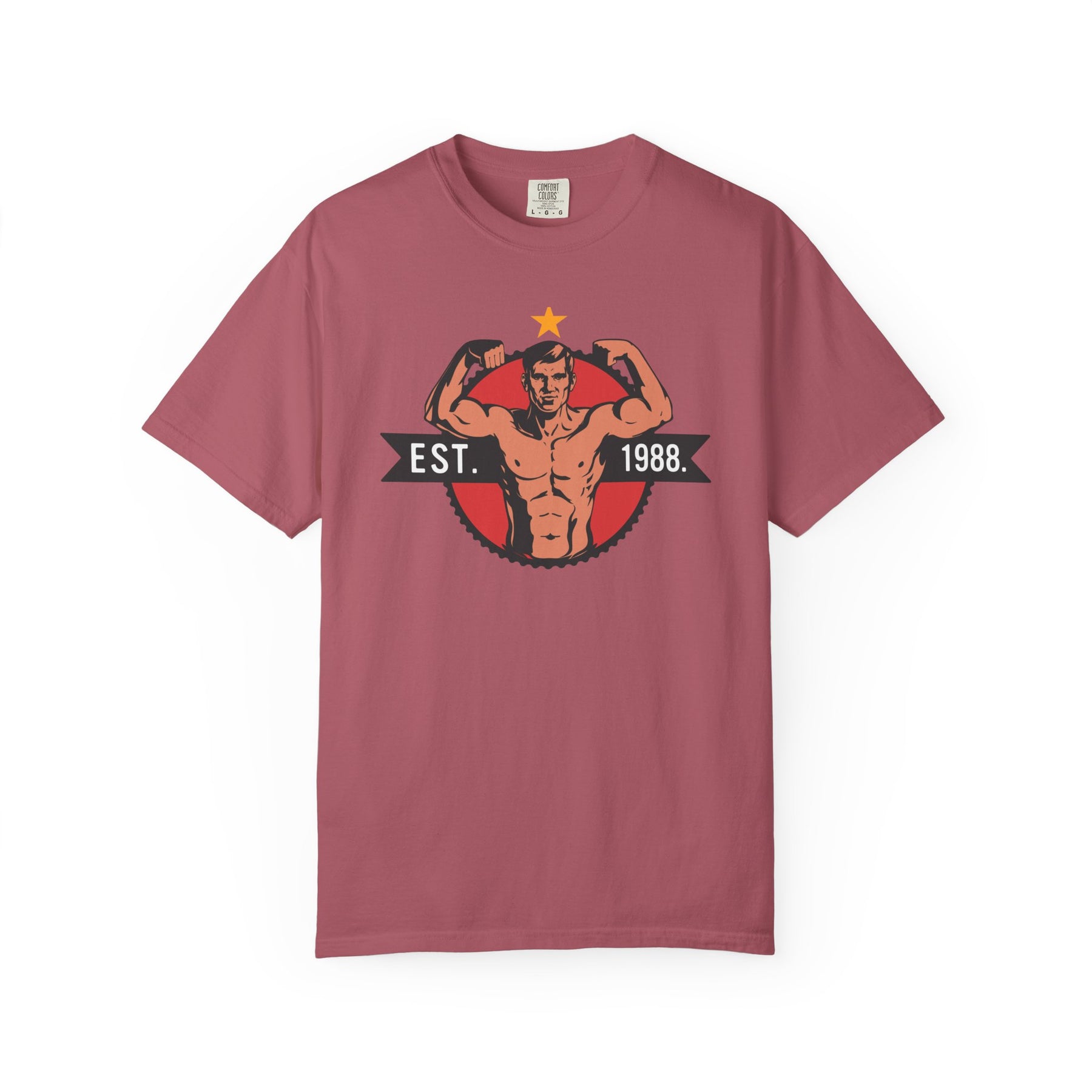 Step back in time with a design that pays tribute to the golden era of bodybuilding. This shirt is more than just gym wear; it’s a piece of history that celebrates the sweat, passion, and energy of the '80s fitness legacy. The vintage-inspired "EST. 1988" design is bold and unapologetic, just like the training style of the legends who inspired it.