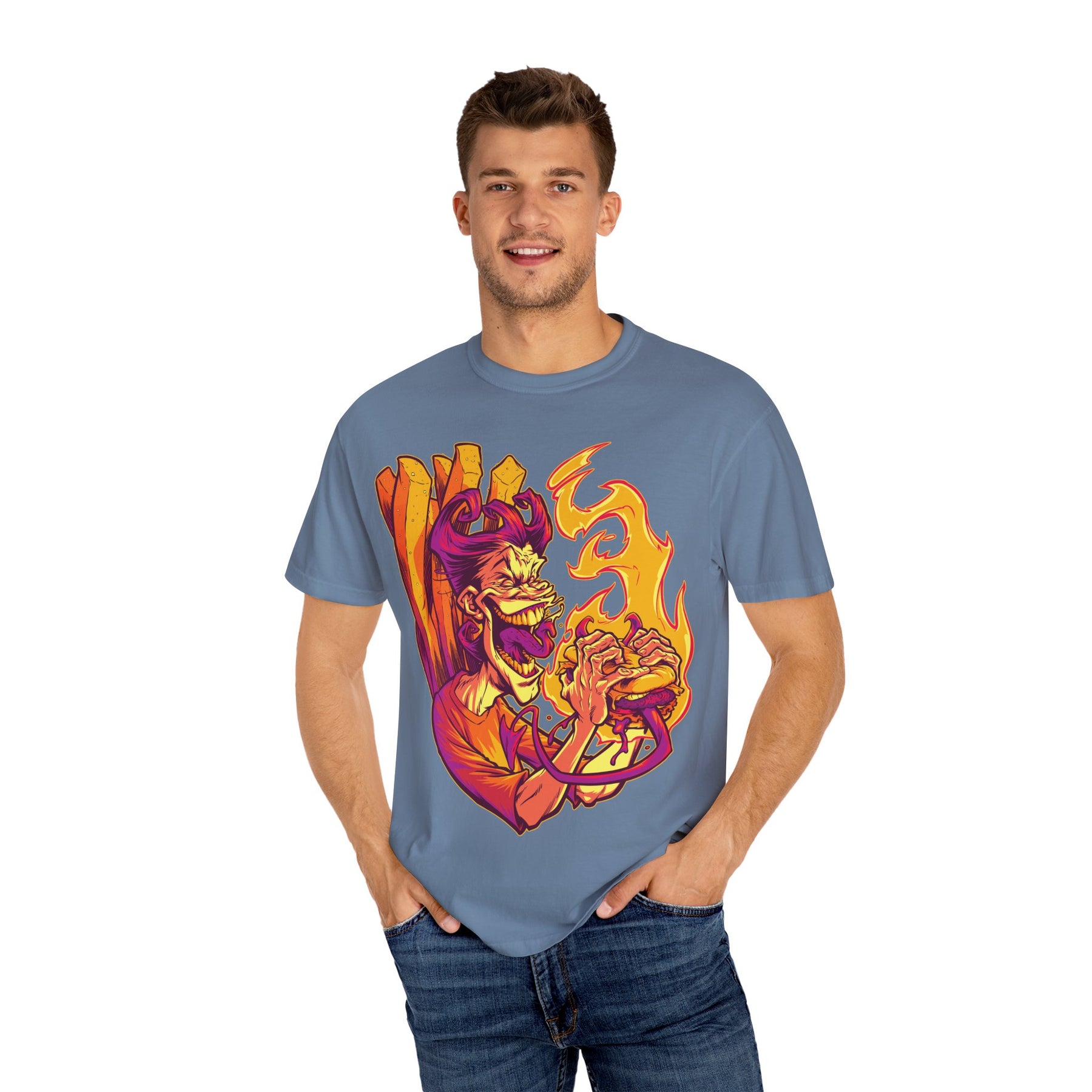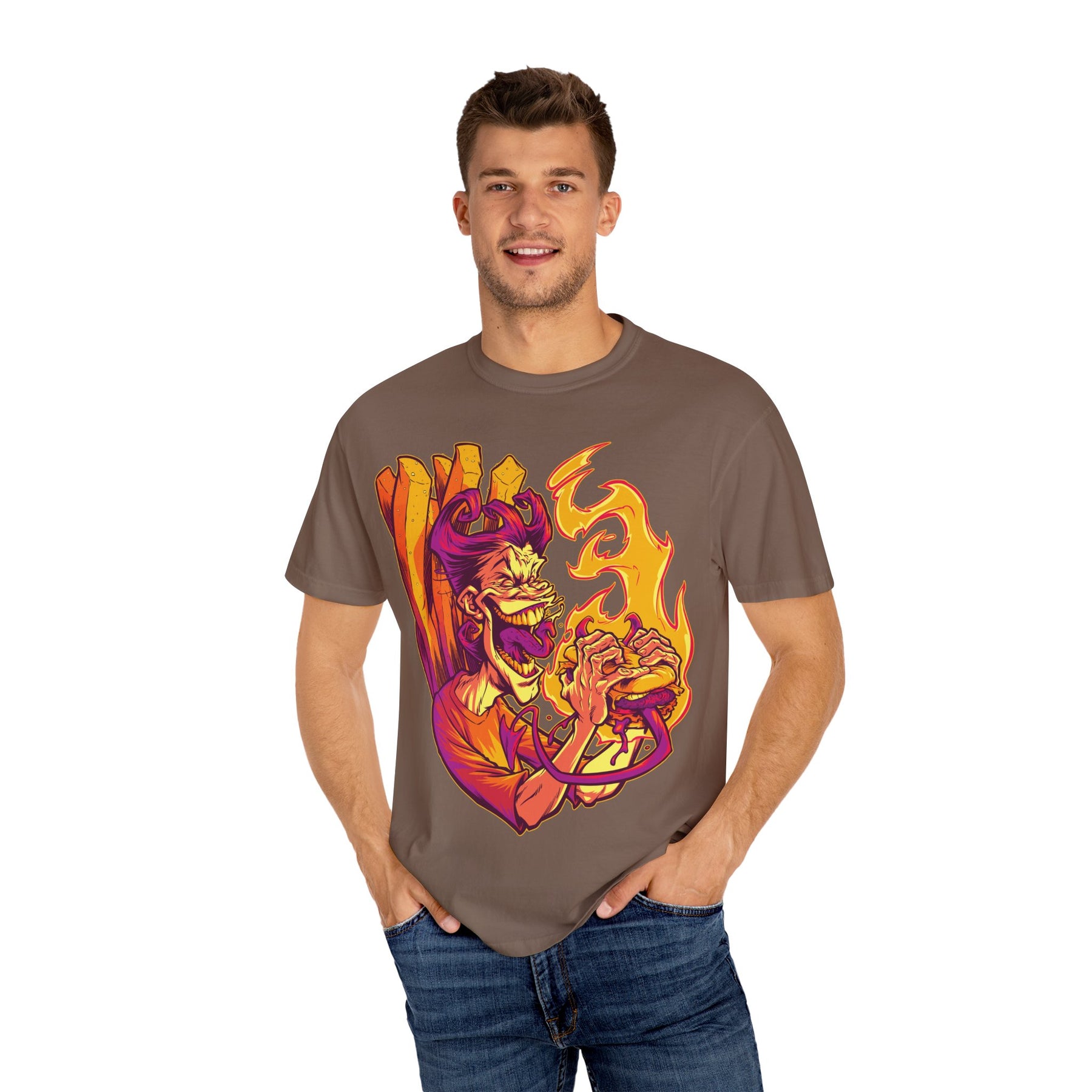 This shirt is a nod to those guilty pleasures we all have, twisted into a piece of horror-inspired art. The "Fast Food Demon" design connects with that part of you that finds humor in the macabre. It's an identity piece for the person who walks their own path. It's a signal to others who share your alternative aesthetic that you're part of the same tribe—one that values originality and doesn't take itself too seriously.