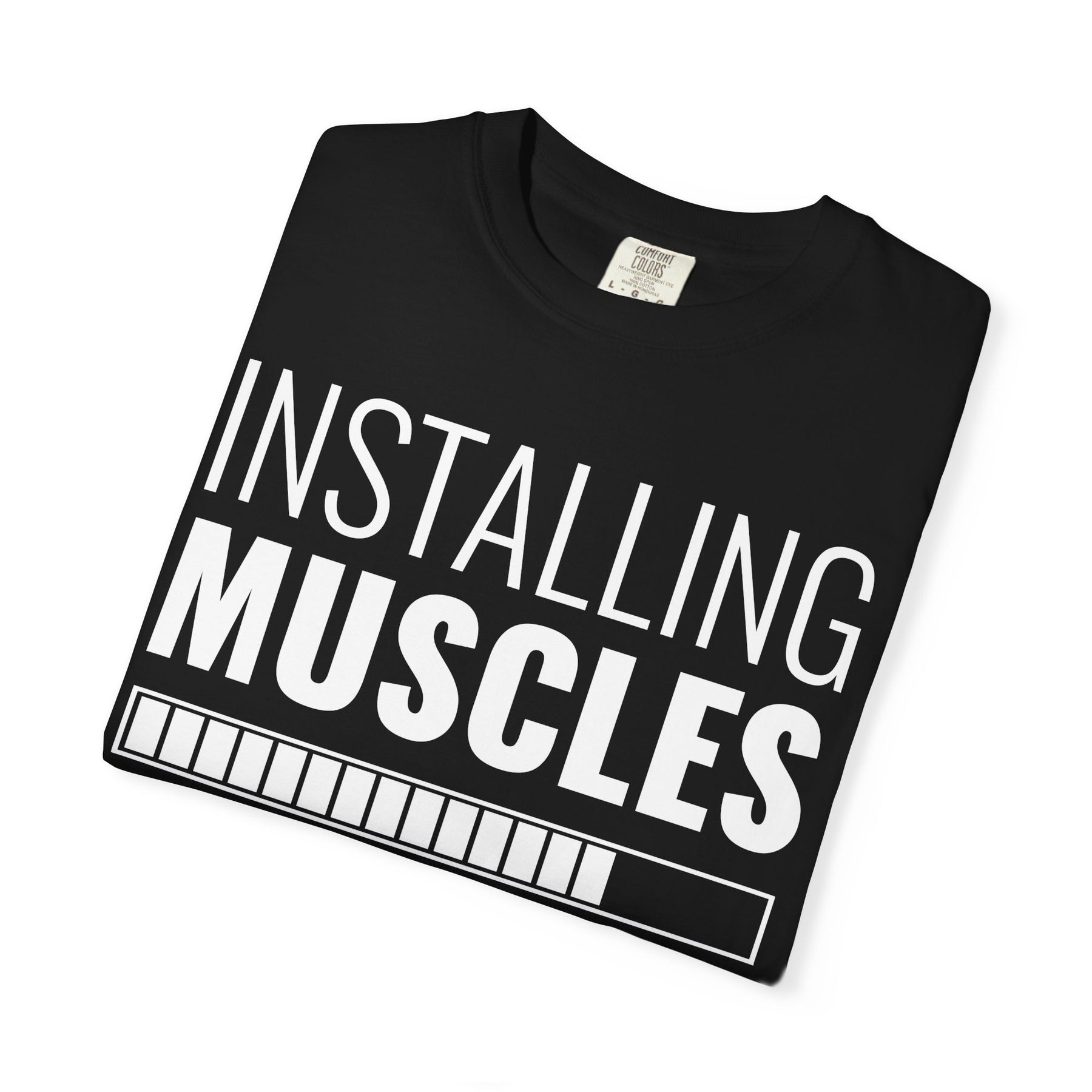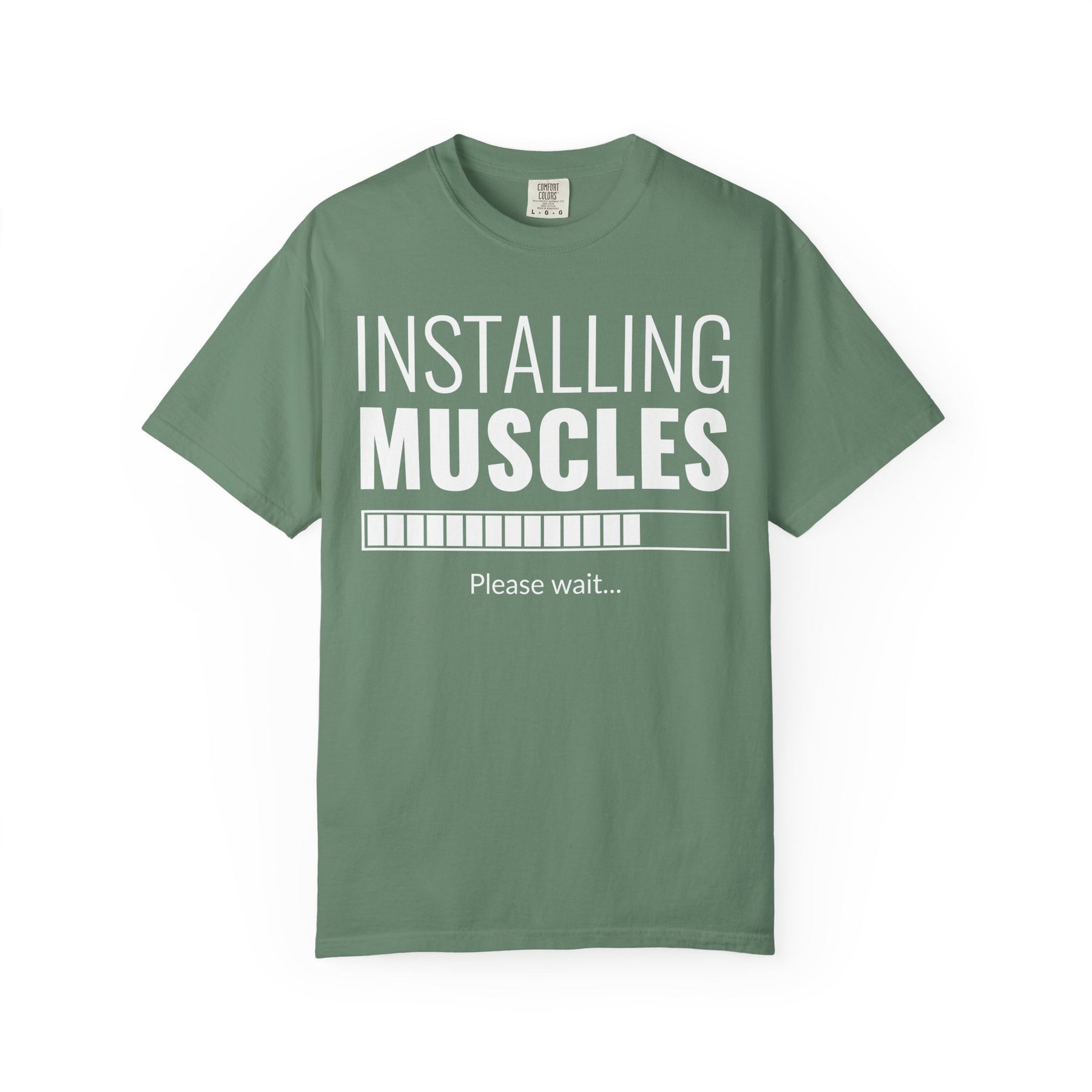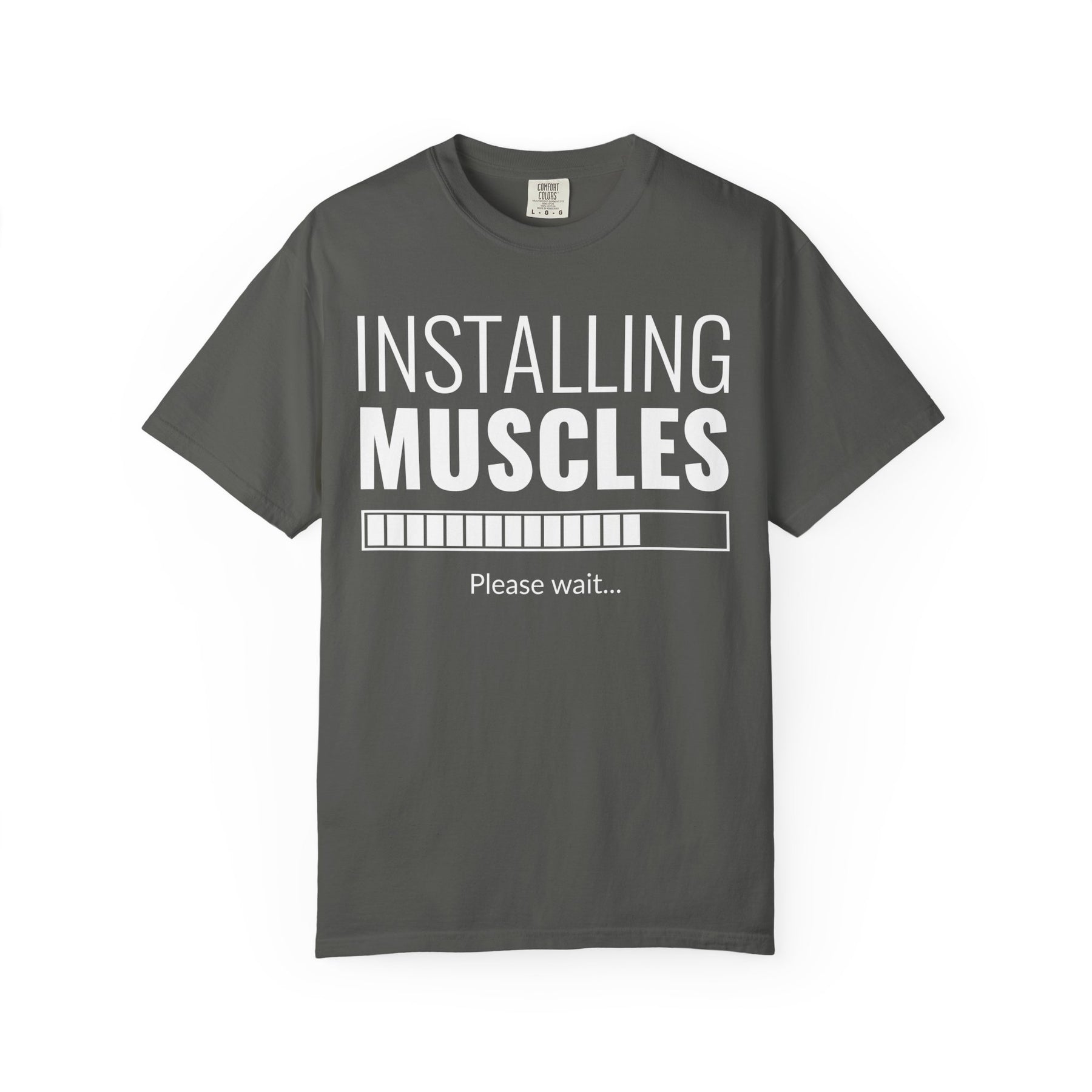 This Installing Muscles Loading Bar t-shirt is the perfect uniform for anyone who understands that great things take time. Featuring the hilarious and all-too-relatable "Installing Muscles... Please Wait" graphic, this tee is a nod to every lifter patiently waiting for their gains to finish loading. It’s a funny, honest, and motivating piece for every stage of the fitness journey.