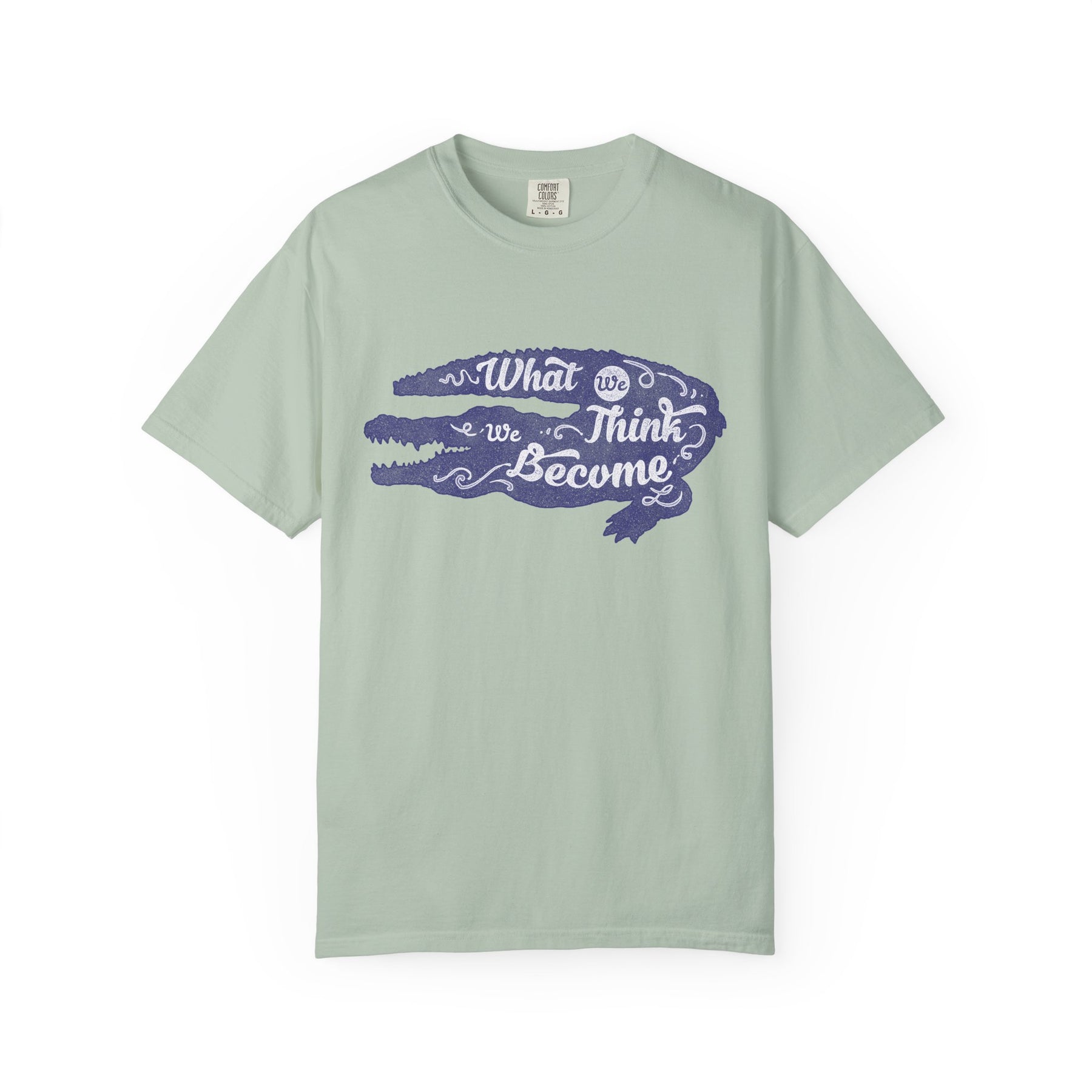 This Alligator Motivational Slogan Tee is for anyone who understands that the most dangerous predators are our own thoughts. Featuring the profound statement, "What We Think We Become," paired with a cool, contemplative alligator, this shirt is the perfect blend of wit, wisdom, and wildlife. It’s an intelligent and slightly sarcastic take on the classic animal graphic tee, designed for those who prefer their motivation with a bit of a bite.