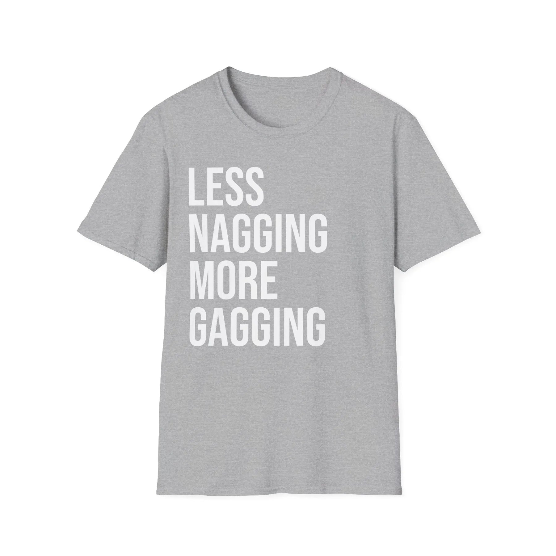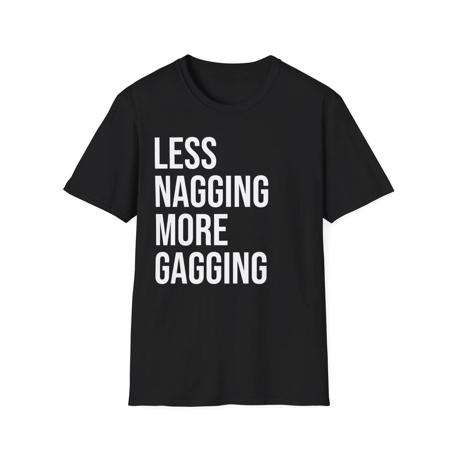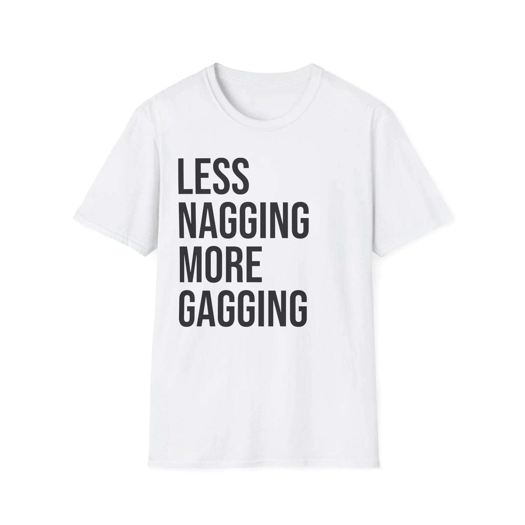 Embrace your playful side with this boldly humorous "Less Nagging More Gagging" t shirt designed for adults who appreciate cheeky relationship humor and aren't afraid to wear their personality on their sleeve. Whether you're part of a couple that loves inside jokes, someone who appreciates adult humor, or simply enjoy shirts that spark conversations and laughter, this design delivers the perfect blend of wit and audacity that resonates with fellow humor enthusiasts.